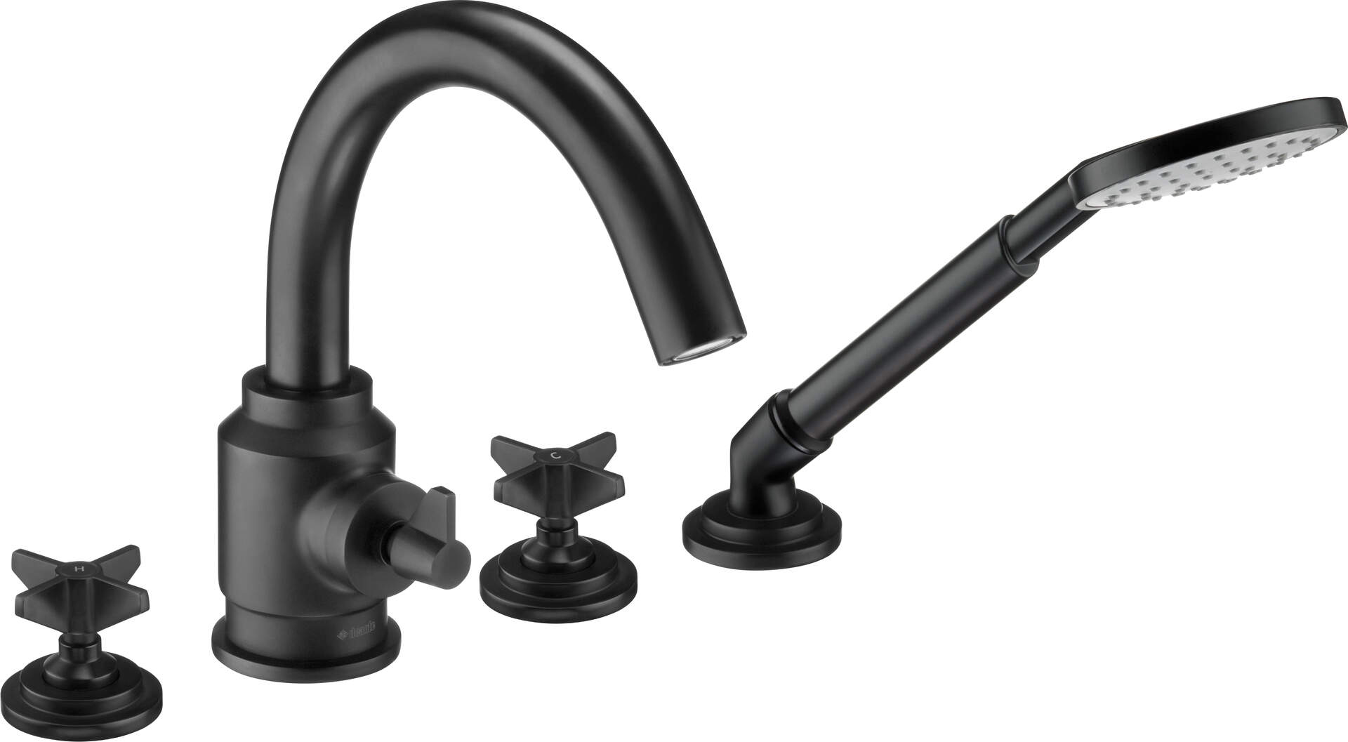 Washbasin-bathtub tap, wall-mounted, with shower set