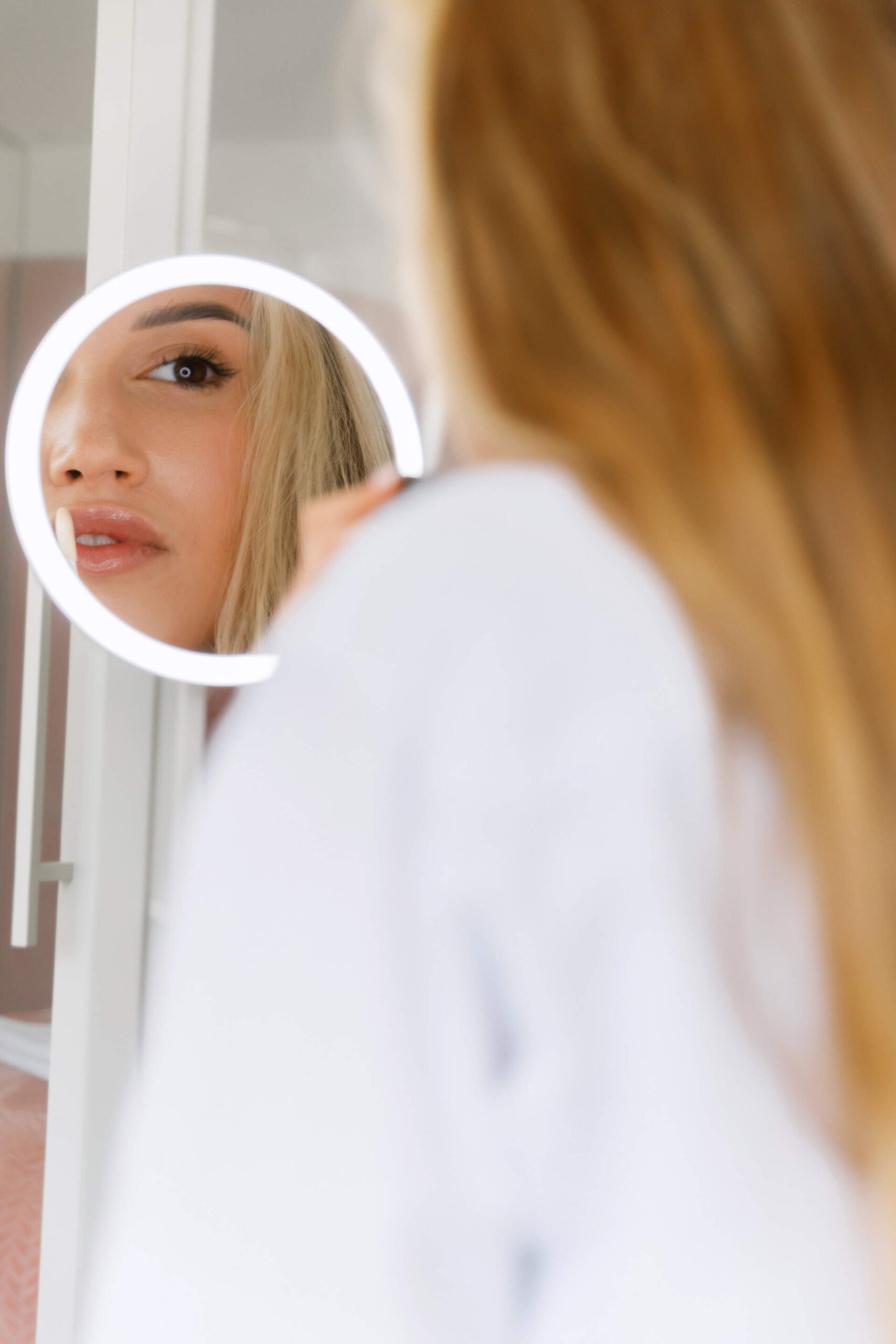 Cosmetic mirror, on extension arm – two-sided