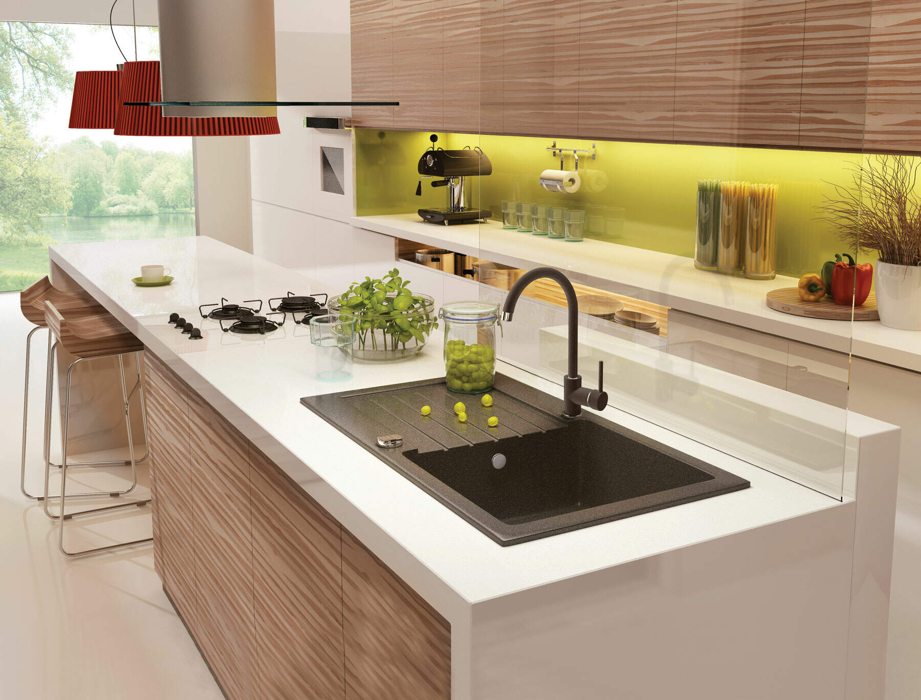 • Sinks mounted flush with the countertop