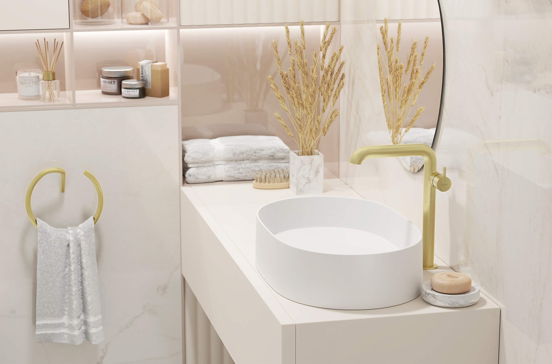 Granite washbasin, countertop, with tap shelf