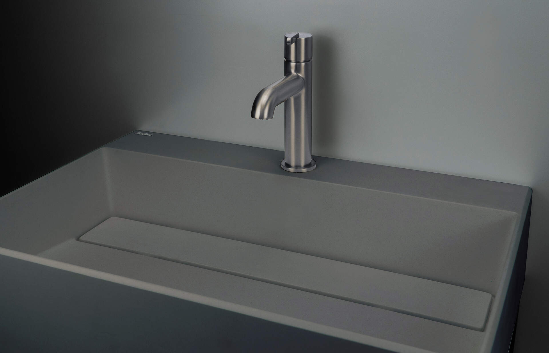 Granite washbasin, countertop, with tap shelf – 400×400 mm