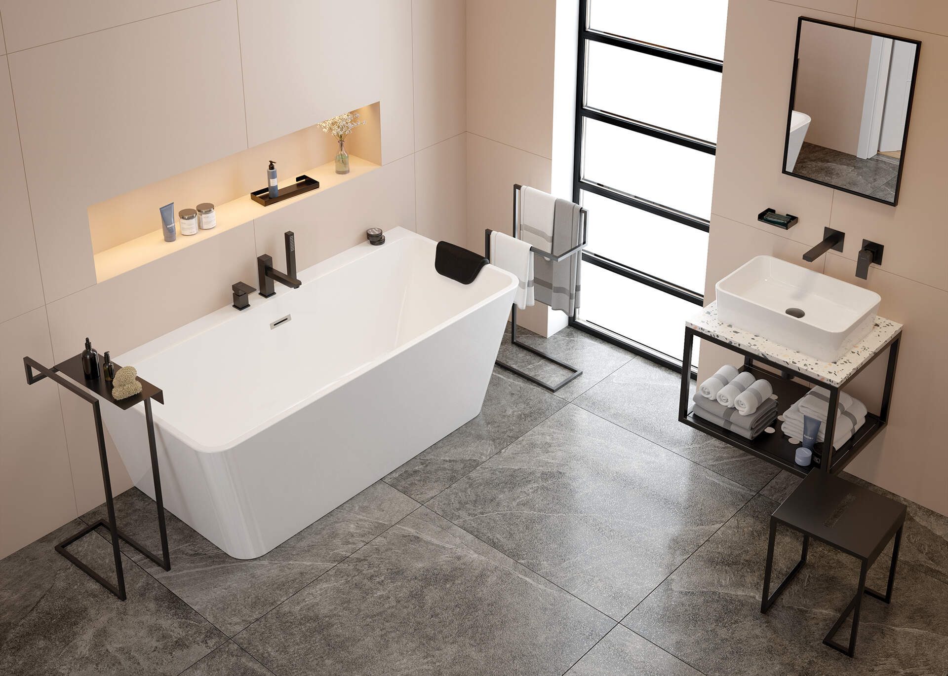 Acrylic bathtub, corner/free-standing, left – 160 cm