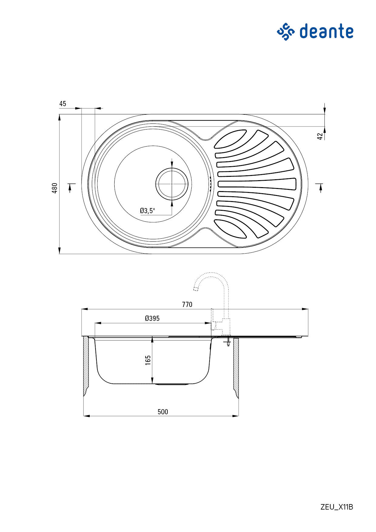 Steel sink, 1-bowl
