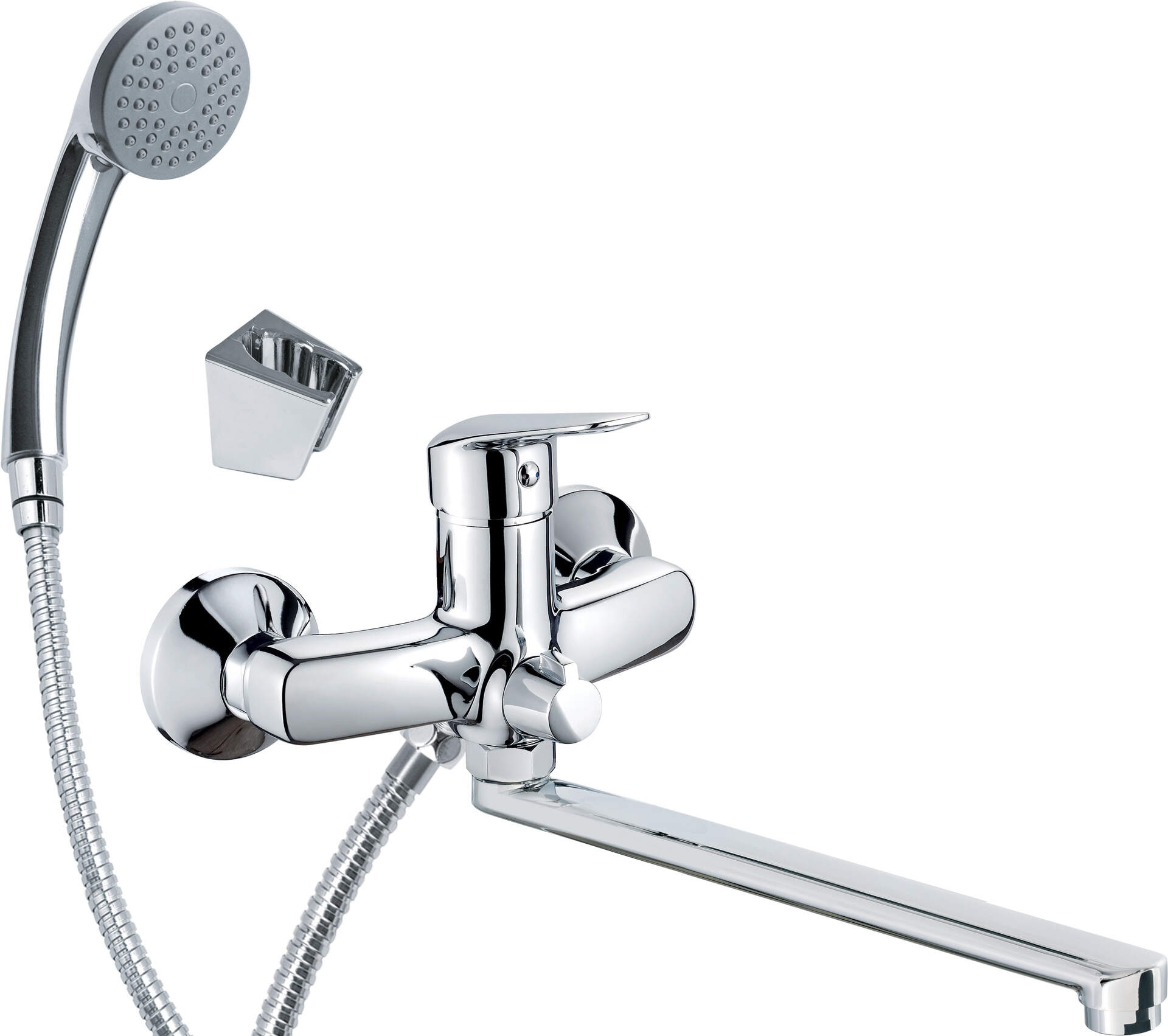 Washbasin tap, wall-mounted, with elongated spout – connection for hose and shower set