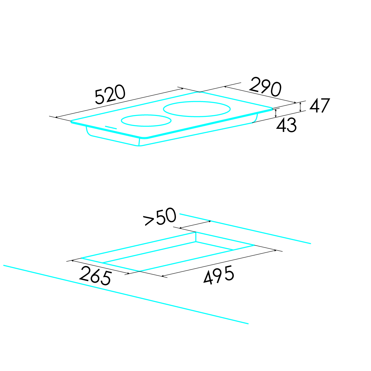 W 580 × D 520 × H 50 mm
