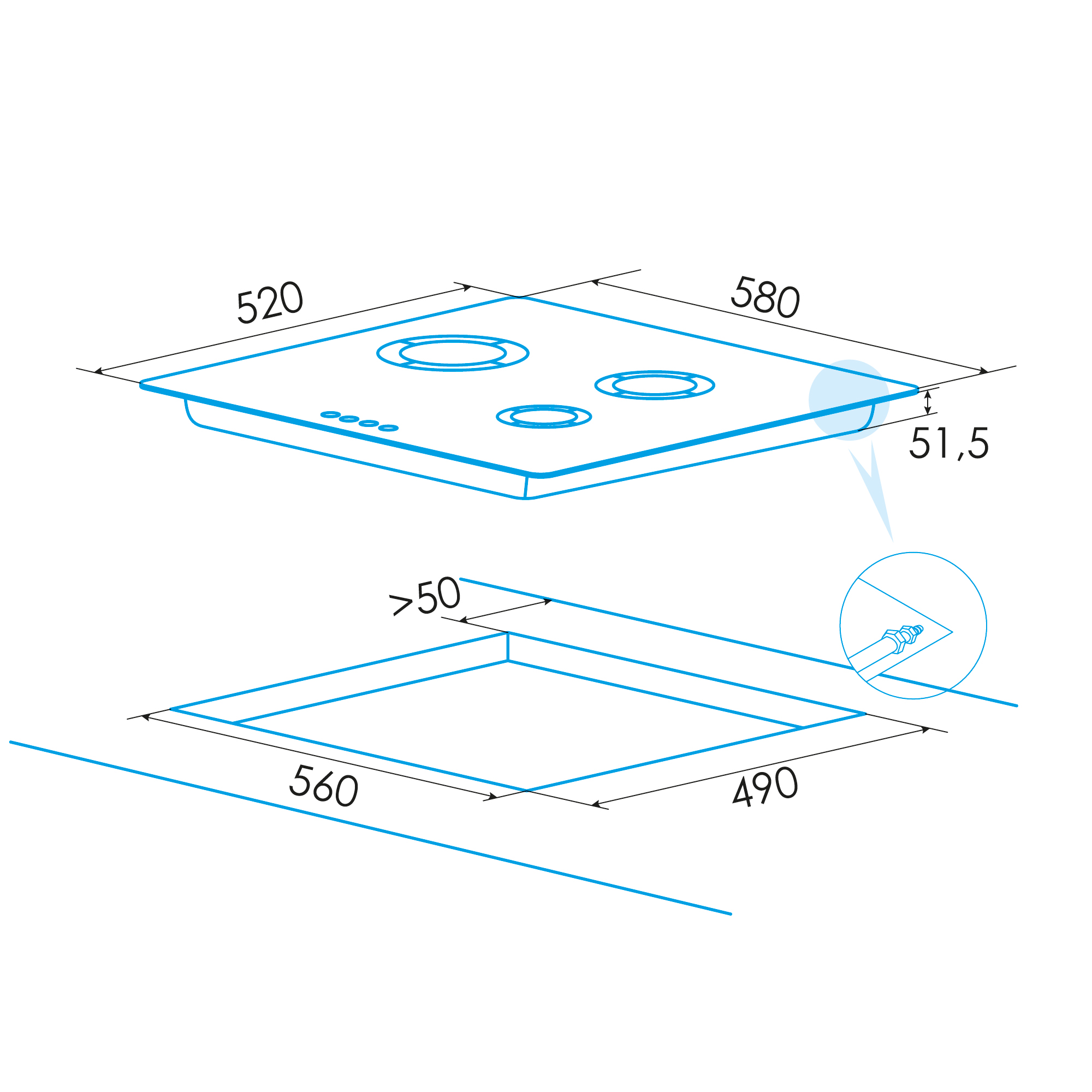 W 580 × D 520 × H 50 mm