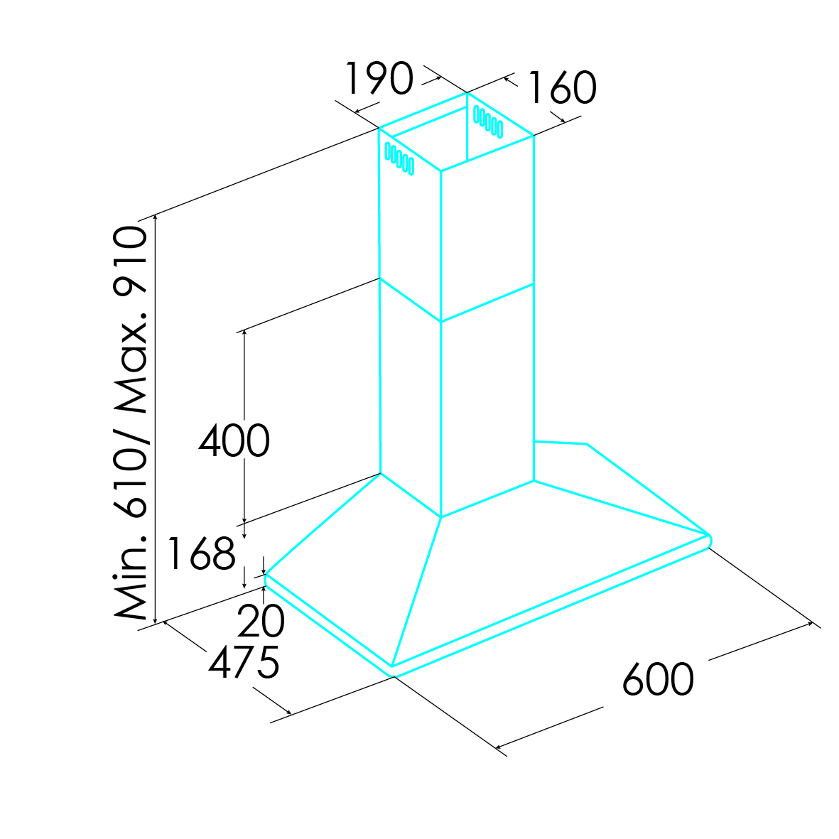 W 600 × D 480 × H 910 mm