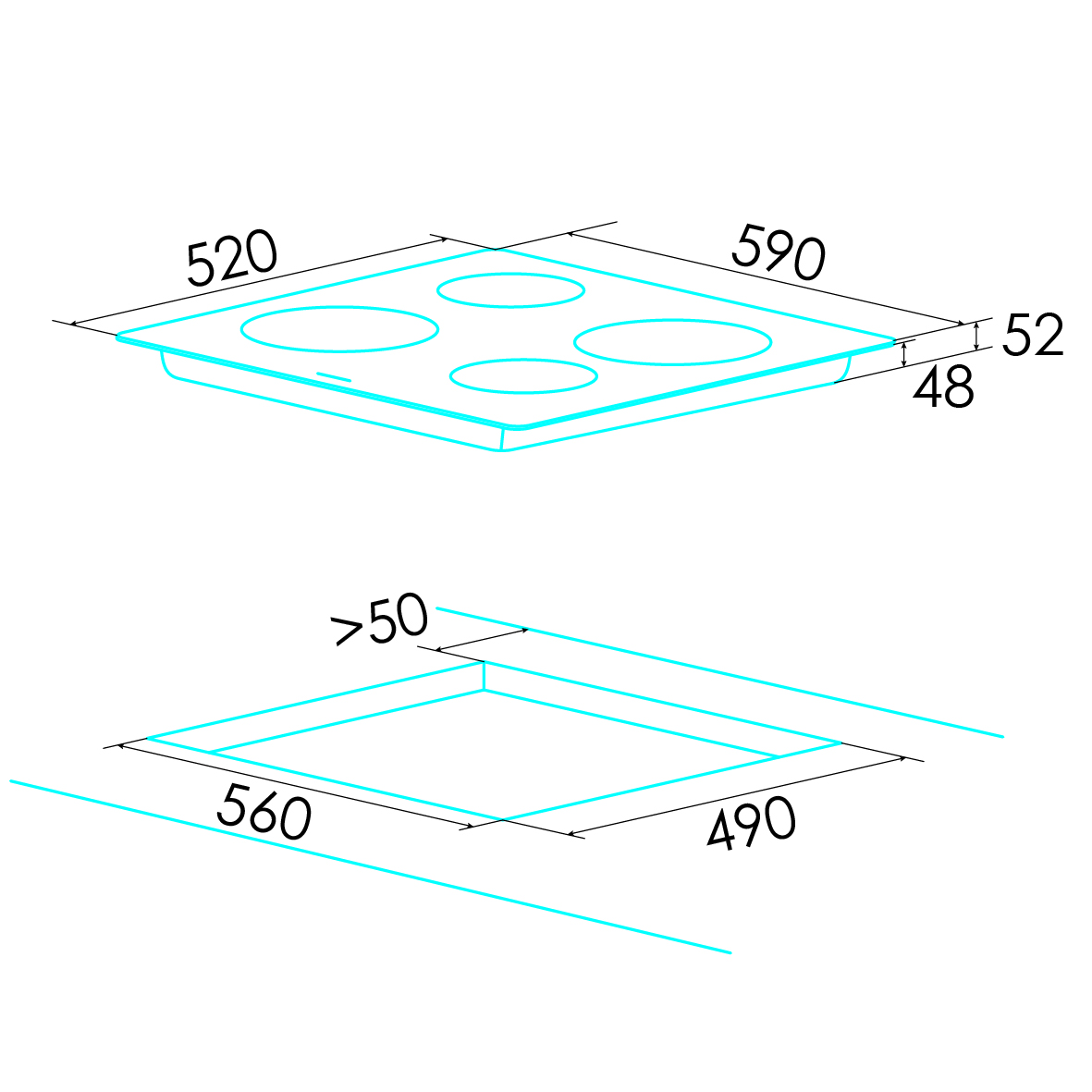 W 590 × D 520 × H 60 mm